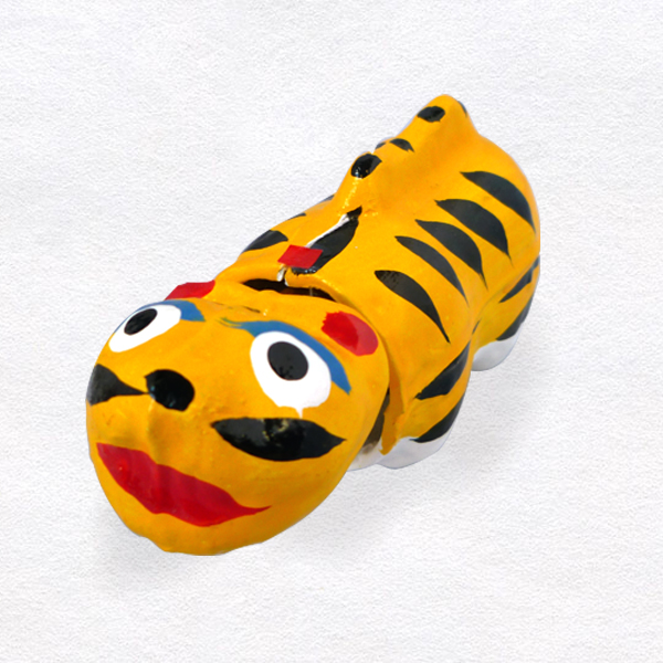 特大の 虎の張り子です。子供の成長を祈るおもちゃとして500年以上前の室町時代から親しまれてきました。中でも人気の虎の張り子は、魔除けや幸運の縁起物としてインテリアにも使われています。重りのついた首は押すとゆらゆらと揺れるので大人から子供まで楽しめます。